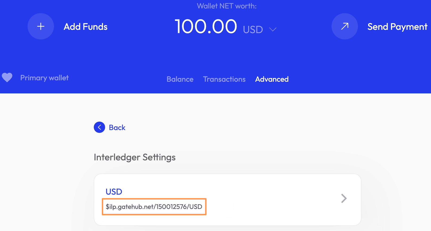 - Click on Interledger Wallet Address.